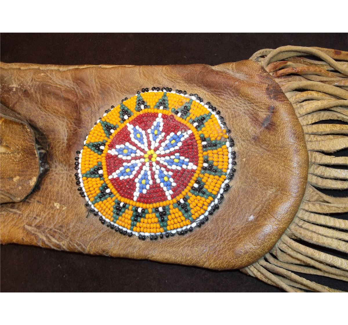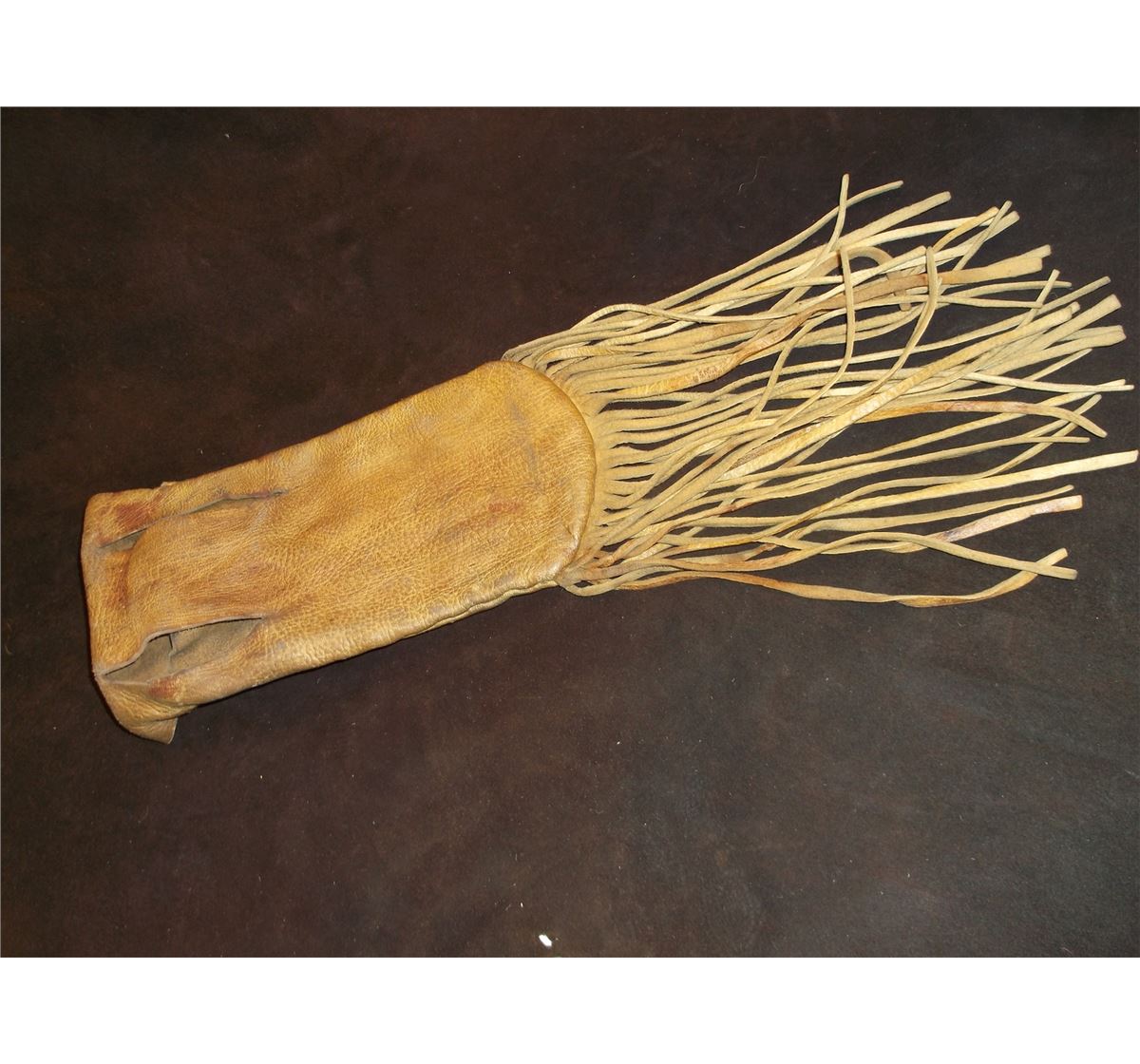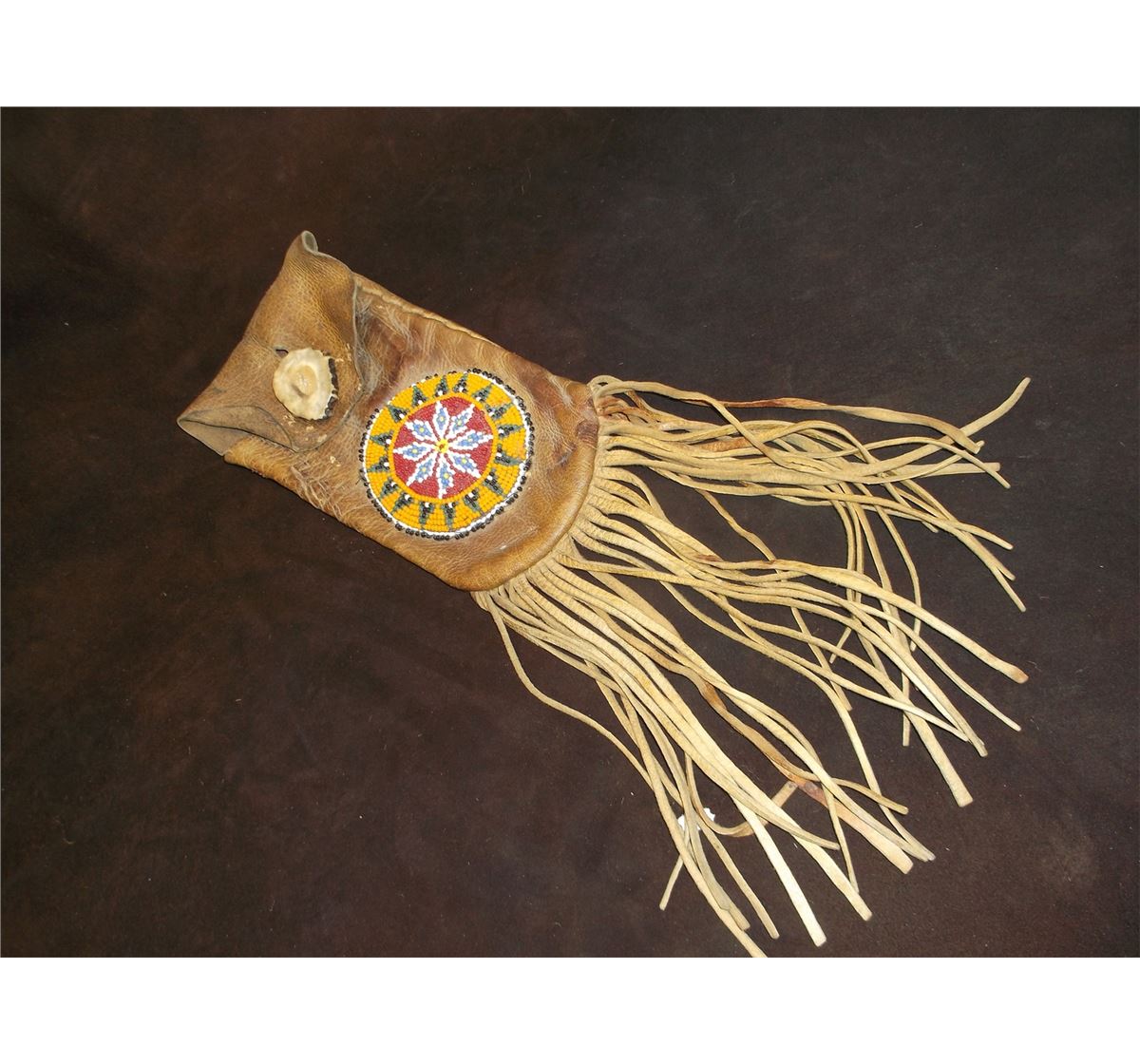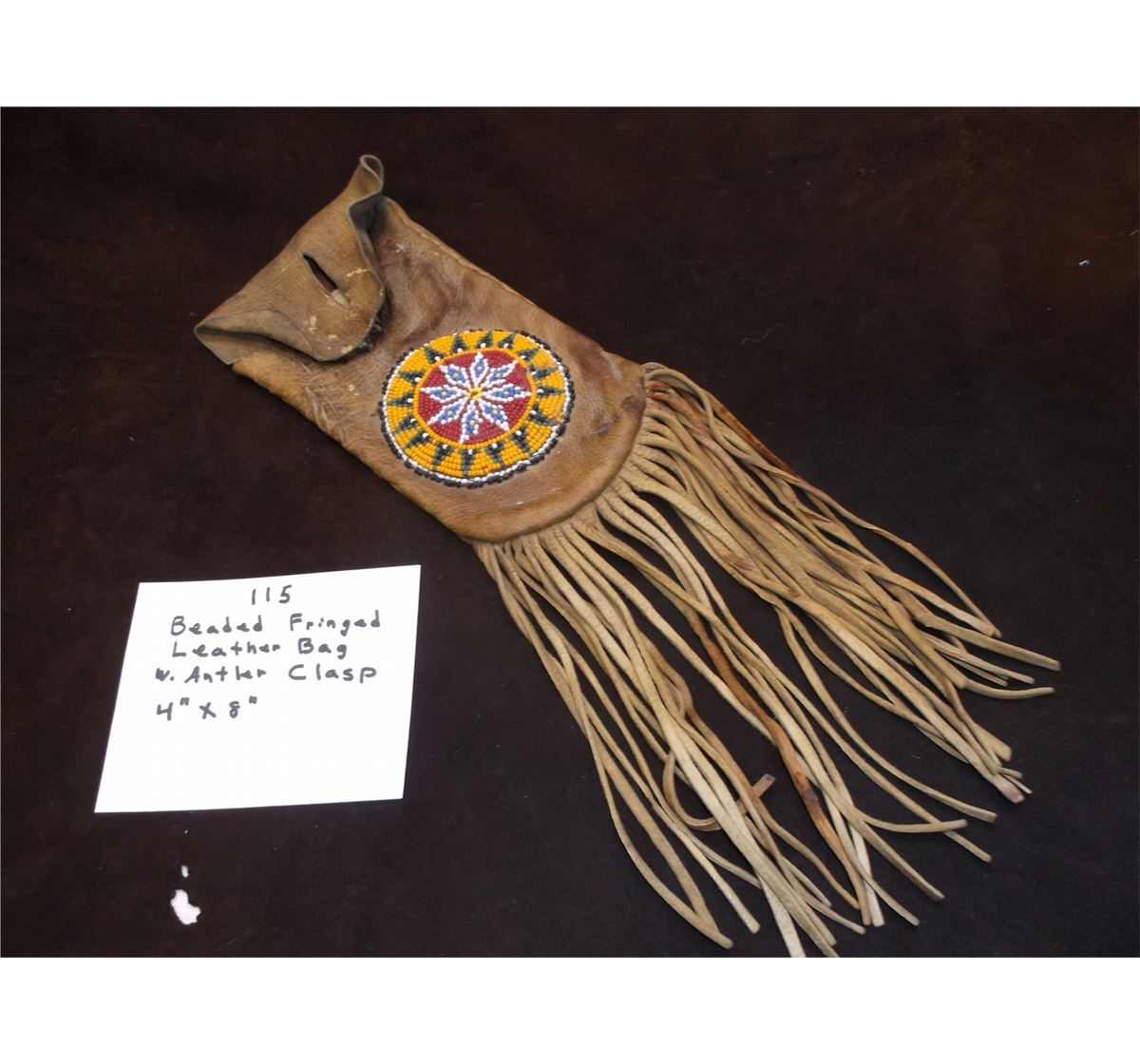 Beaded Fringed Leather Bag w/Antler Clasp- 4" X 8"
