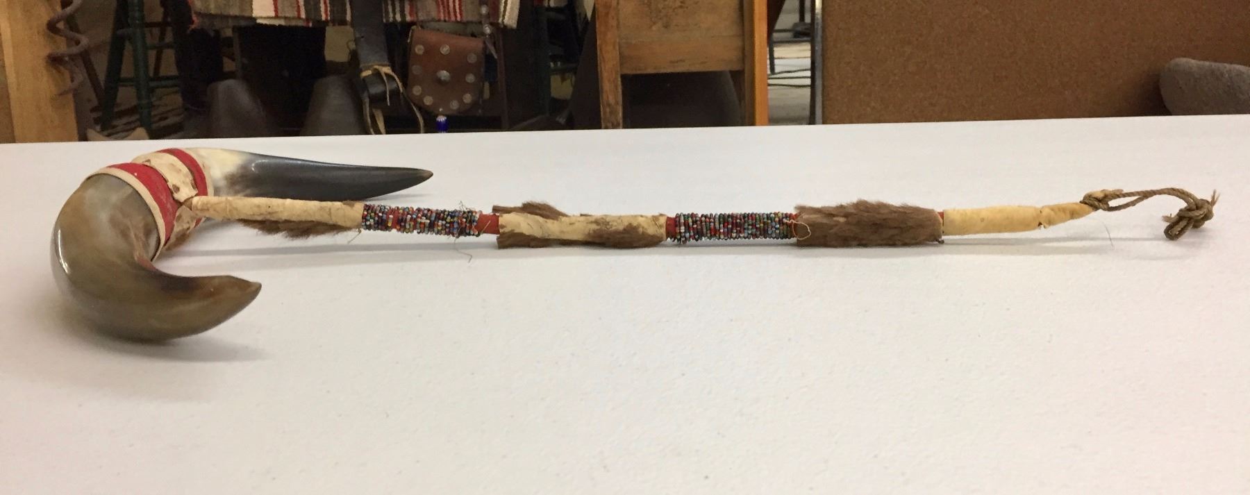 Description: Beaded horn dance wand. Maker: Unknown. Approx. Age: Vintage. Size: Approx. 21” l x 12” w. Condition: Good for its age, normal wear expected. Please look closely at the pictures - they are an important part of our description. Shipping: There will be a $7 handling / packaging fee for shipping this lot. The actual cost of postage will be added on top of that.
