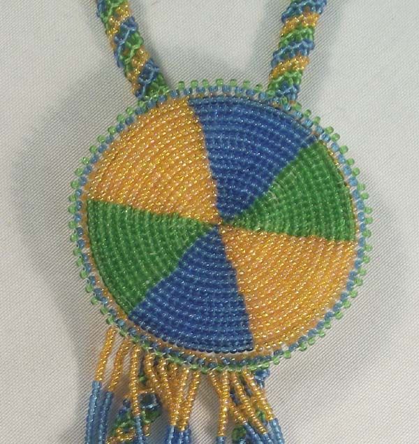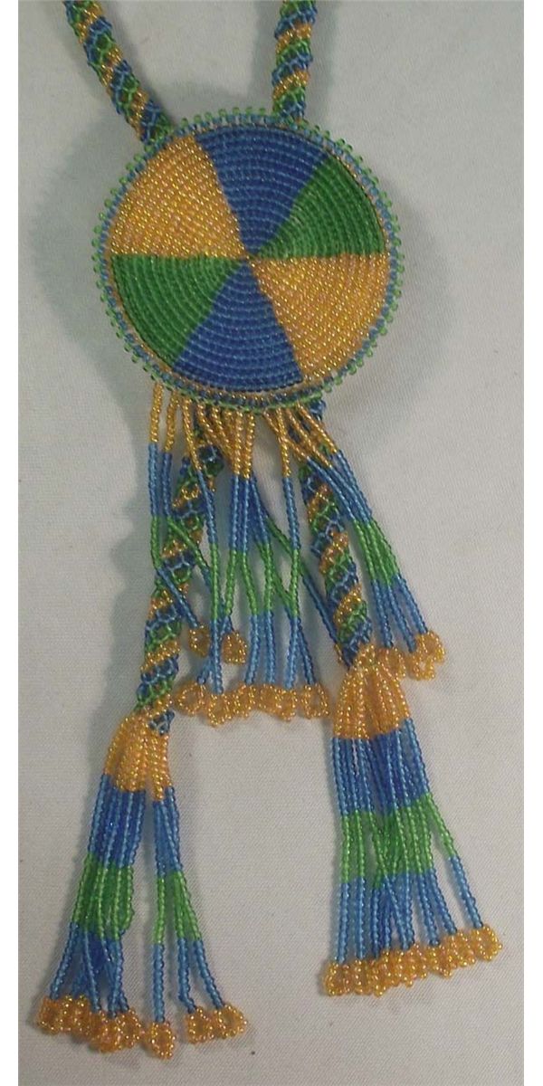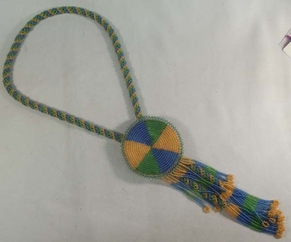 Beaded Necklace With Slide. Necklace measures approx. 36'' and the slide measures approx. 3'' diameter x 5 1/2''L.