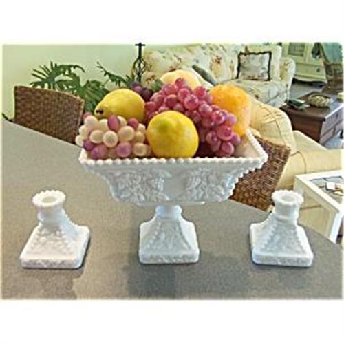 <table width="100%" border="0" cellspacing="0" cellpadding="4"><tr><td><em> </em></td></tr><tr> <td width="100%"> This is a beautiful Westmoreland compote and pair of candlestick holders. It is in the Beaded Panel Grape design. It is marked on each bottom. I tried to show it in the picture, but my camera didn't pick it up very well. It's the real thing not a reproduction. This milk glass was considered very elegant in the 50's. It still looks elegant, and this set is in mint condition. No chips or cracks and I'll even throw in the fruit if you want it. </td></tr><tr> <td> </td></tr><tr> <td>Reference #: 1452</td></tr><tr><td>Condition:See Description</td></tr><tr><td>Year:See Description</td></tr><tr><td>Title:Beaded Panel Grape Compote Set</td></tr><tr><td>Location:Montgomery, Alabama</td></tr></table>