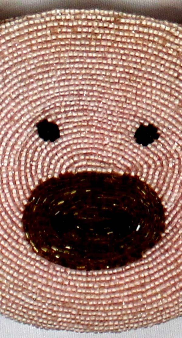 Beaded Pink Pig Change Purse with Beaded Shoulder Strap Purse measures 5'' x 6''.