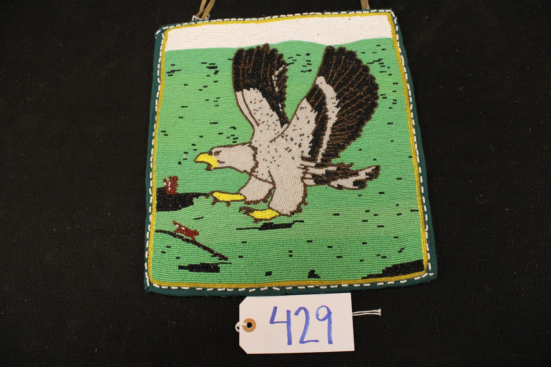 Eagle hunting prairie dogs on blue background. Newer cloth binding / backing. Vintage partial lining. 12.5" w x 12" h