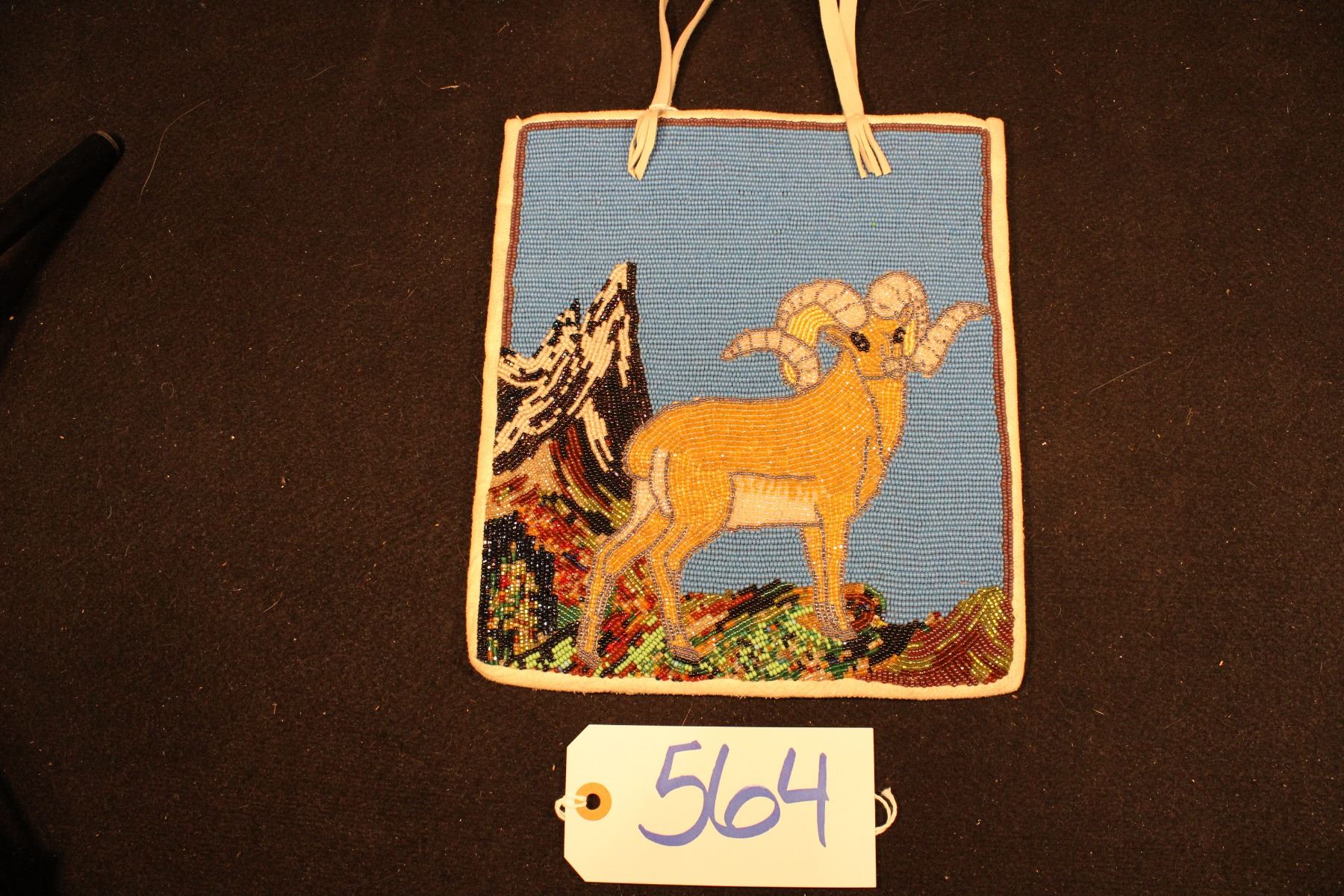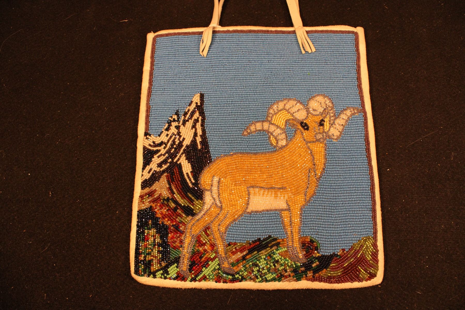 Big horn sheep on peak w/ blue background. After cecilia Totus. Bucksin bound and backed. Vintage lining. 8.5 x 10