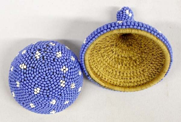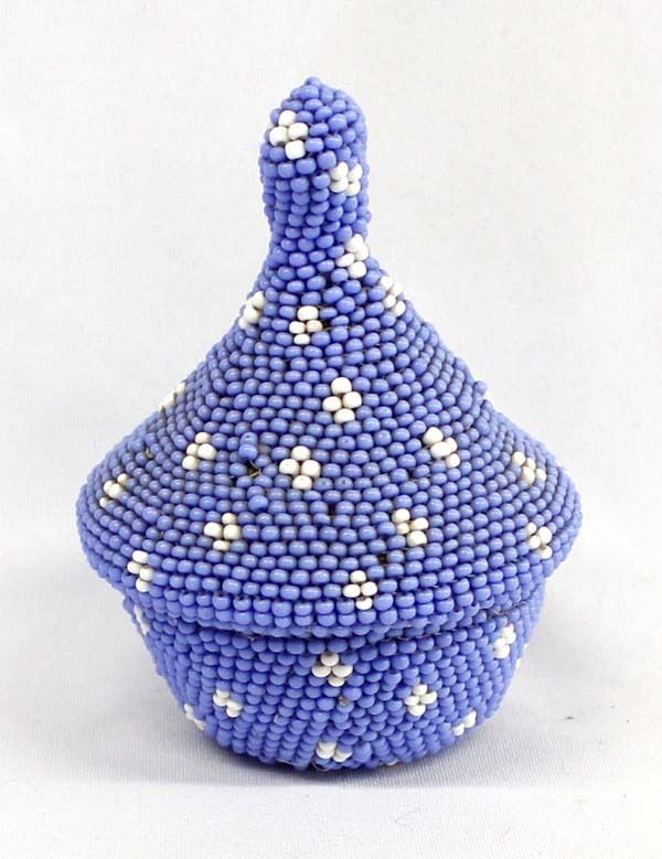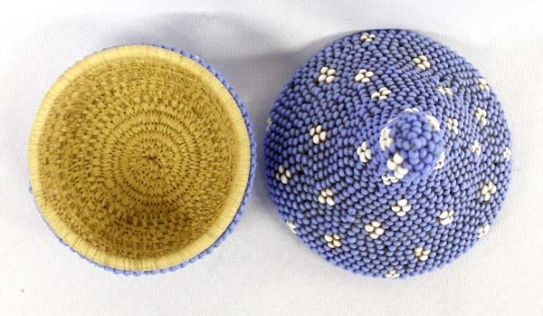 Beaded South African Tutsi Lidded Basket, measures 4'' x 5''