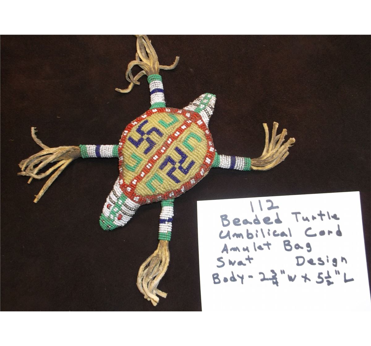 Beaded Turtle Umbilical Cord Amulet Bag- Swastika Design Body- 2 3/4"W X 5 1/2"L