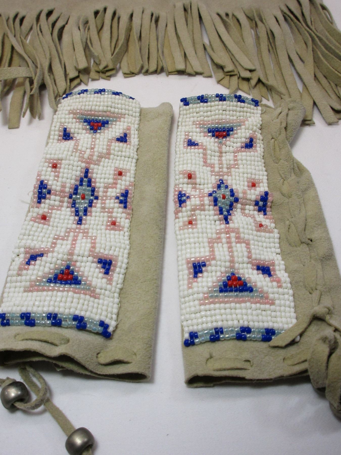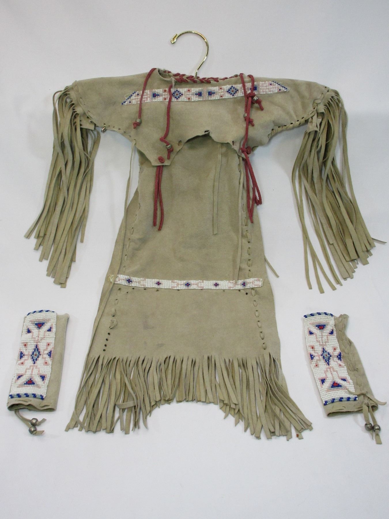 Beaded and Fringed Native Baby Dress- Doeskin- Beaded Drops- Some Fringe Loss- 20"L X 15"W at Shoulders