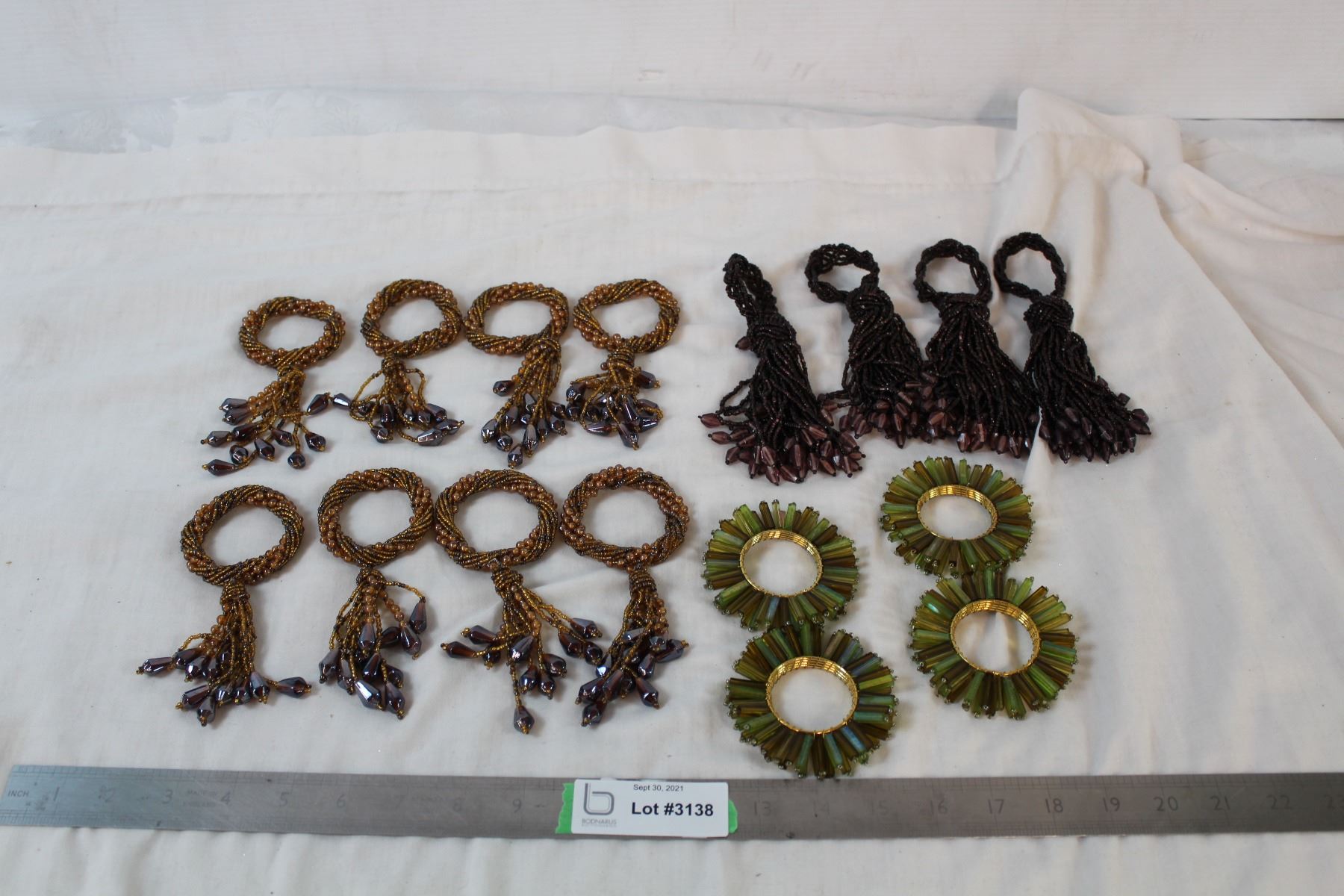 Beaded napkin rings, 2 sets of 4, 1 set of 8