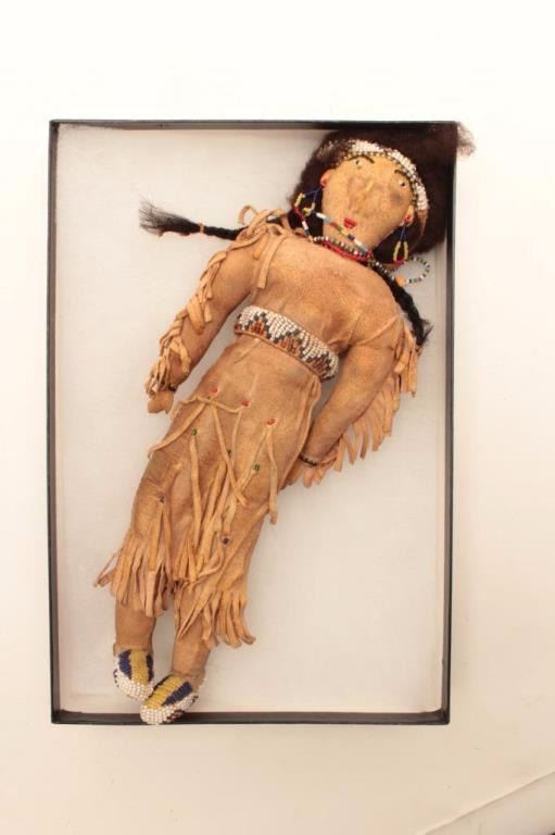 Beaded on buckskin doll in display; Indian style, 13” -14”. Est.: $75-$150