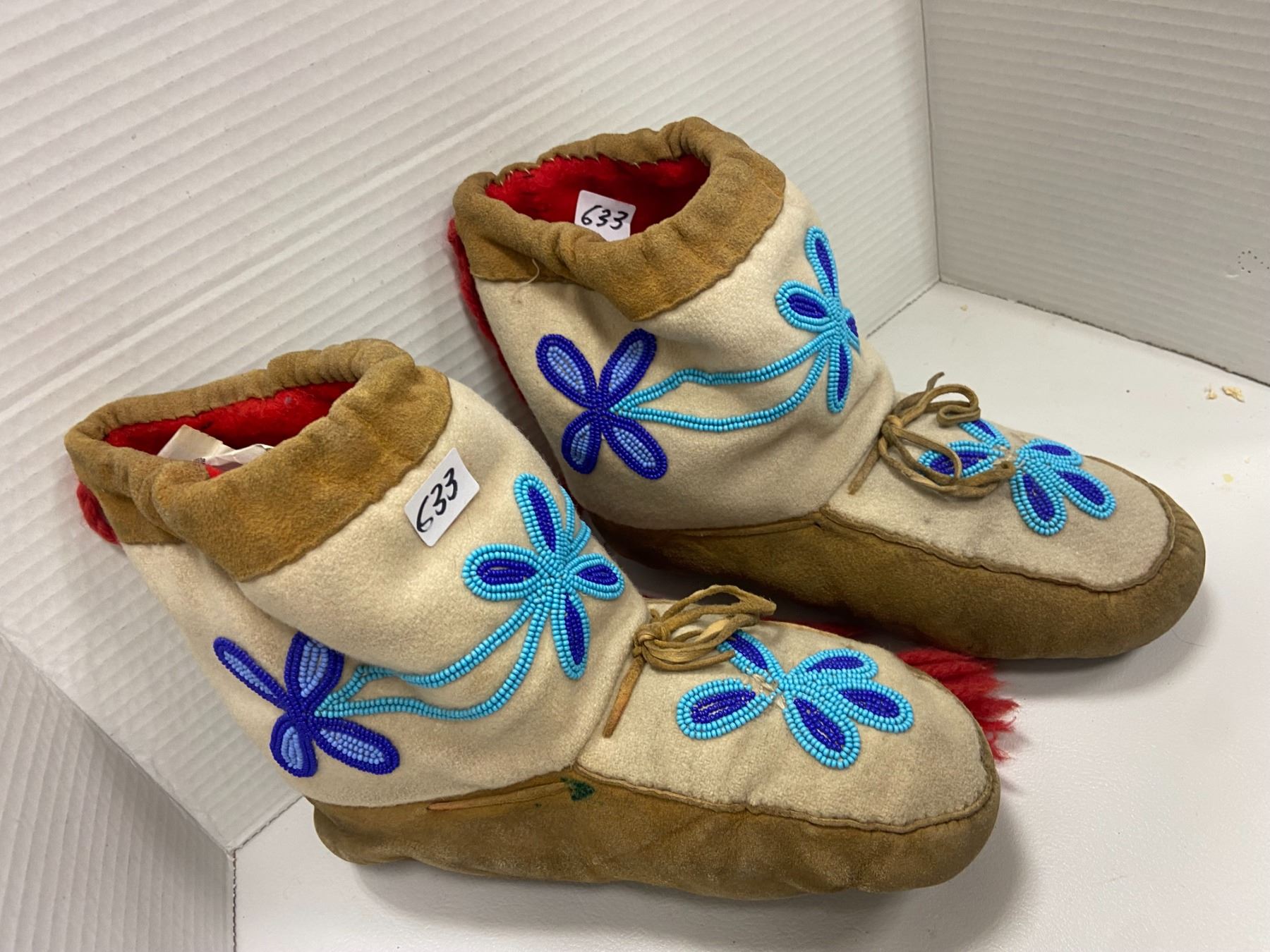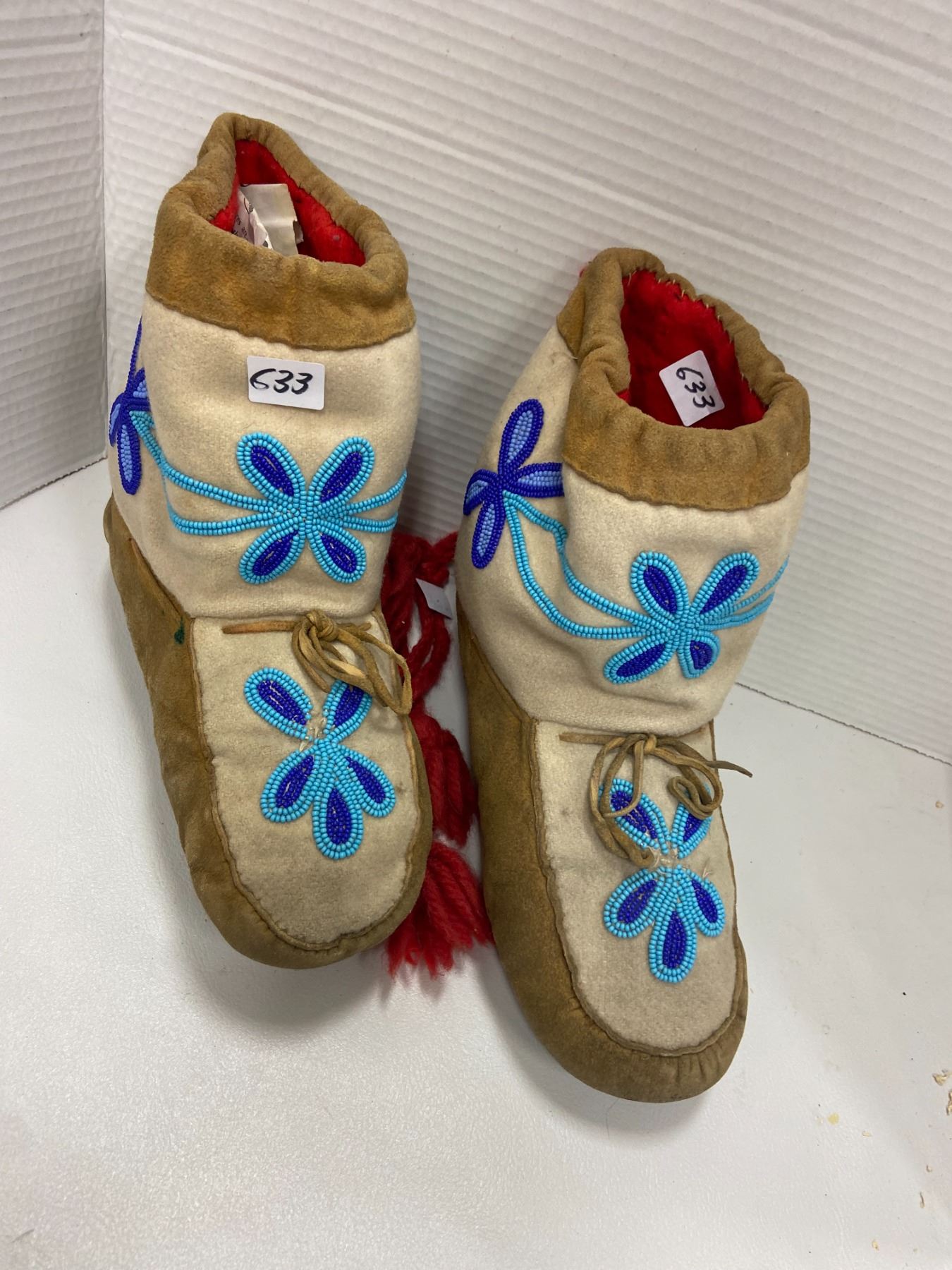 Beaded short muckluks 9 1/2 toe to heel 8" tall Native handcrafted