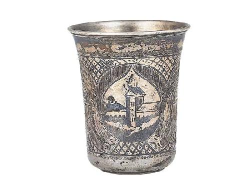 Silver, 62 g. Engraved and niello decoration. Marked: Moscow, 1878. Size: 7.5 cm