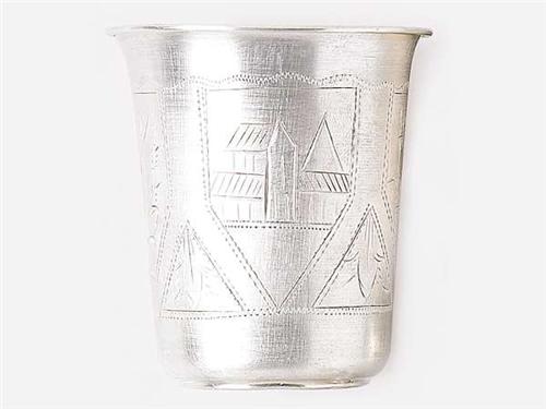 Silver, cylindrical form with everted rim, engraved by machine, circa 1900, import mark, weight: 51.0 g, height: 6.5 cm.