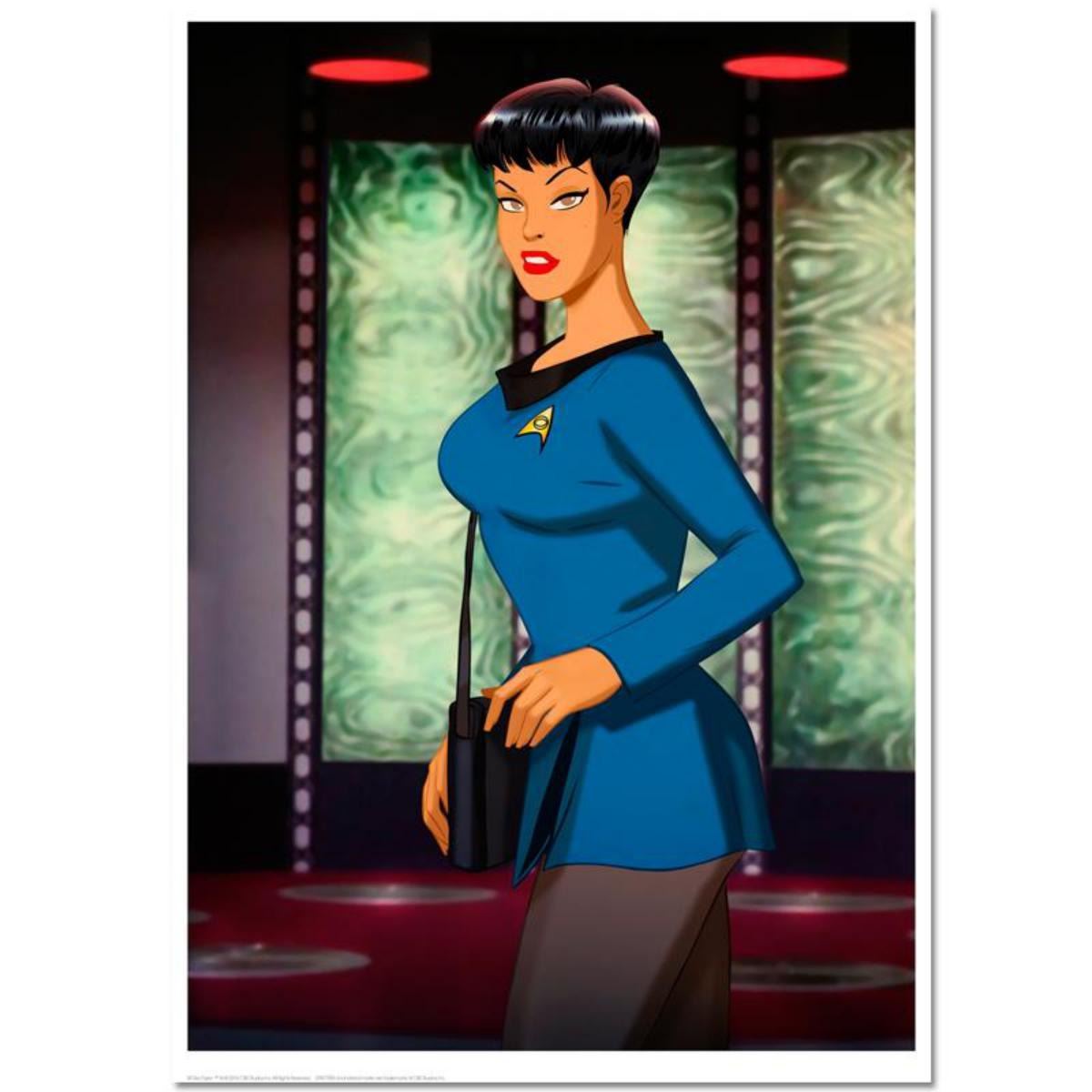 Created for the Star Trek 50th Anniversary Art Exhibition, "Beaming Down" by Des Taylor is a chromatic pigment ink limited edition on archival paper. The piece is numbered, hand-signed by the artist, and comes with a Certificate of Authenticity. Measures approx. 22" x 34" (image). Reference #: 220845.