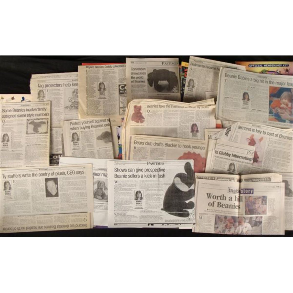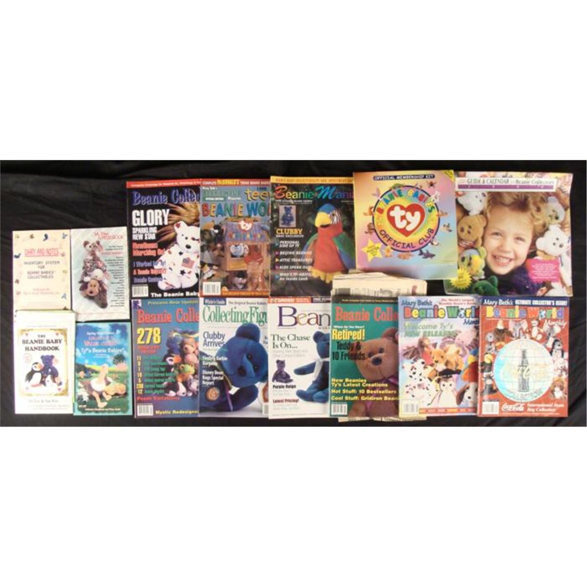 Here's a group of books and magazines from a Beanie Baby collector. There are 4 books, 9 magazines, 1999 calendar (still sealed) and even some newspaper clippings. There is also an Official Membership Club kit (incomplete- missing poster). These items date back to 1998, during the height of Beanie mania. * These are not only great collector guides, these are now historical artifacts of the Beanie Baby phenomenon!