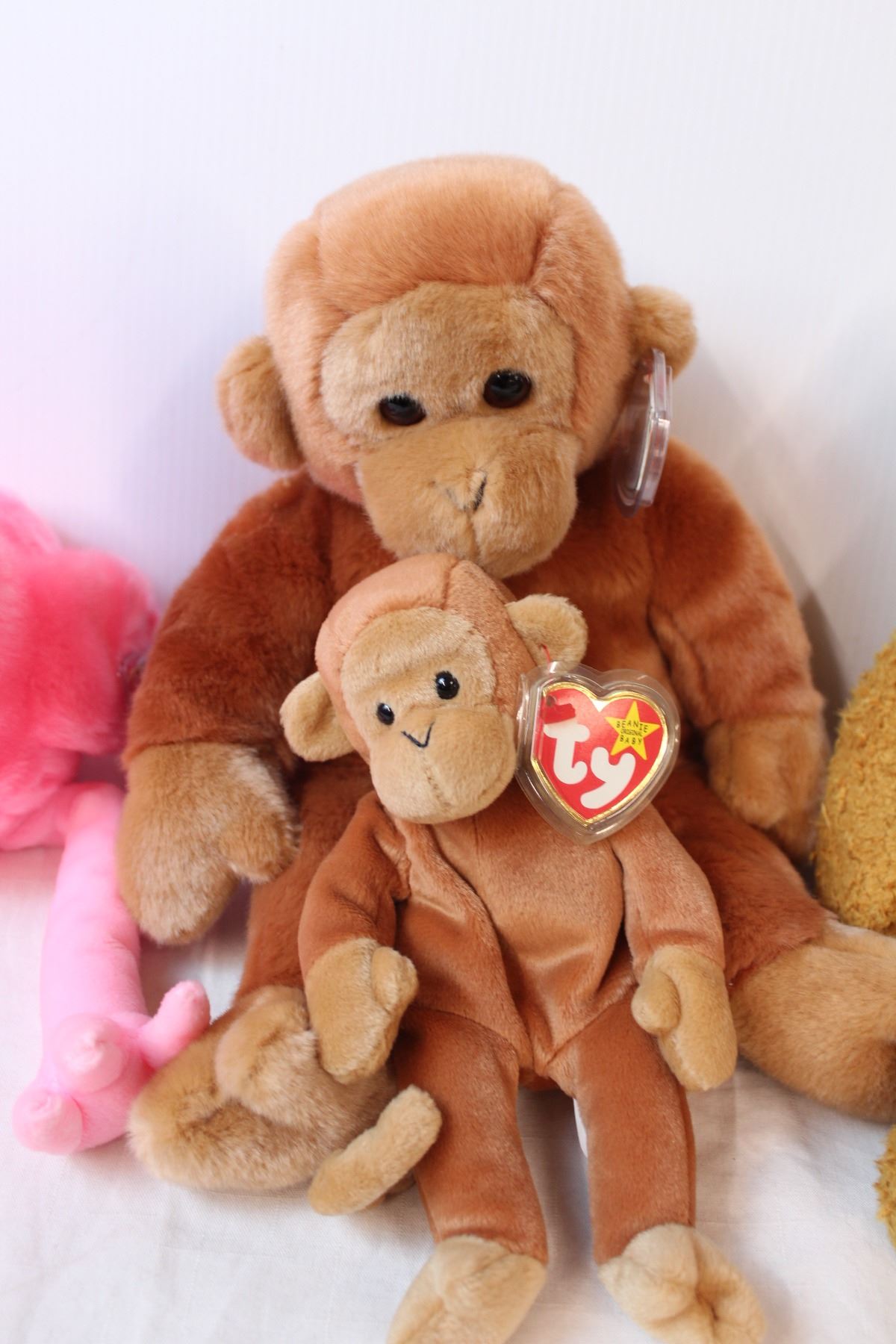 Beanie Baby and Buddy matching sets; Flamingo, Monkey, Fuzz