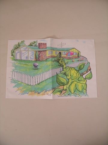 In a departure for his usual strange creature slasher films, the colorful producer Charles Band created a more “family” tale in his update of the classic Jack and the Beanstalk called “Beanstalk” (1994). As usual, he put an enormous amount of production on the screen for his legendary tiny budgets. This is mostly due to the “miracle worker”, his production designer, Milo, who is able to create amazing sets, effects and visuals virtually out of thin air. His artwork and storyboards have become extremely collectable, for their amazing detail, and artistry. They are works of art that can be framed and displayed. Here are four original pencil drawings showing the progression of the beanstalk growing to the heavens, and two color renditions of Jack’s (JD Daniels, “Mighty Ducks” 1992) modern suburban home, with the beanstalk growing out of it. There are also hand written notes on these drawings. (Pencil drawings are 14x17, and color are 11x17. They are folded in the middle, and some have corner “pin” marks where they were put up on a storyboard)