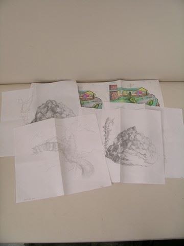 In a departure for his usual strange creature slasher films, the colorful producer Charles Band created a more “family” tale in his update of the classic Jack and the Beanstalk called “Beanstalk” (1994). As usual, he put an enormous amount of production on the screen for his legendary tiny budgets. This is mostly due to the “miracle worker”, his production designer, Milo, who is able to create amazing sets, effects and visuals virtually out of thin air. His artwork and storyboards have become extremely collectable, for their amazing detail, and artistry. They are works of art that can be framed and displayed. Here are four original pencil drawings showing the progression of the beanstalk growing to the heavens, and two color renditions of Jack’s (JD Daniels, “Mighty Ducks” 1992) modern suburban home, with the beanstalk growing out of it. There are also hand written notes on these drawings. (Pencil drawings are 14x17, and color are 11x17. They are folded in the middle, and some have corner “pin” marks where they were put up on a storyboard)