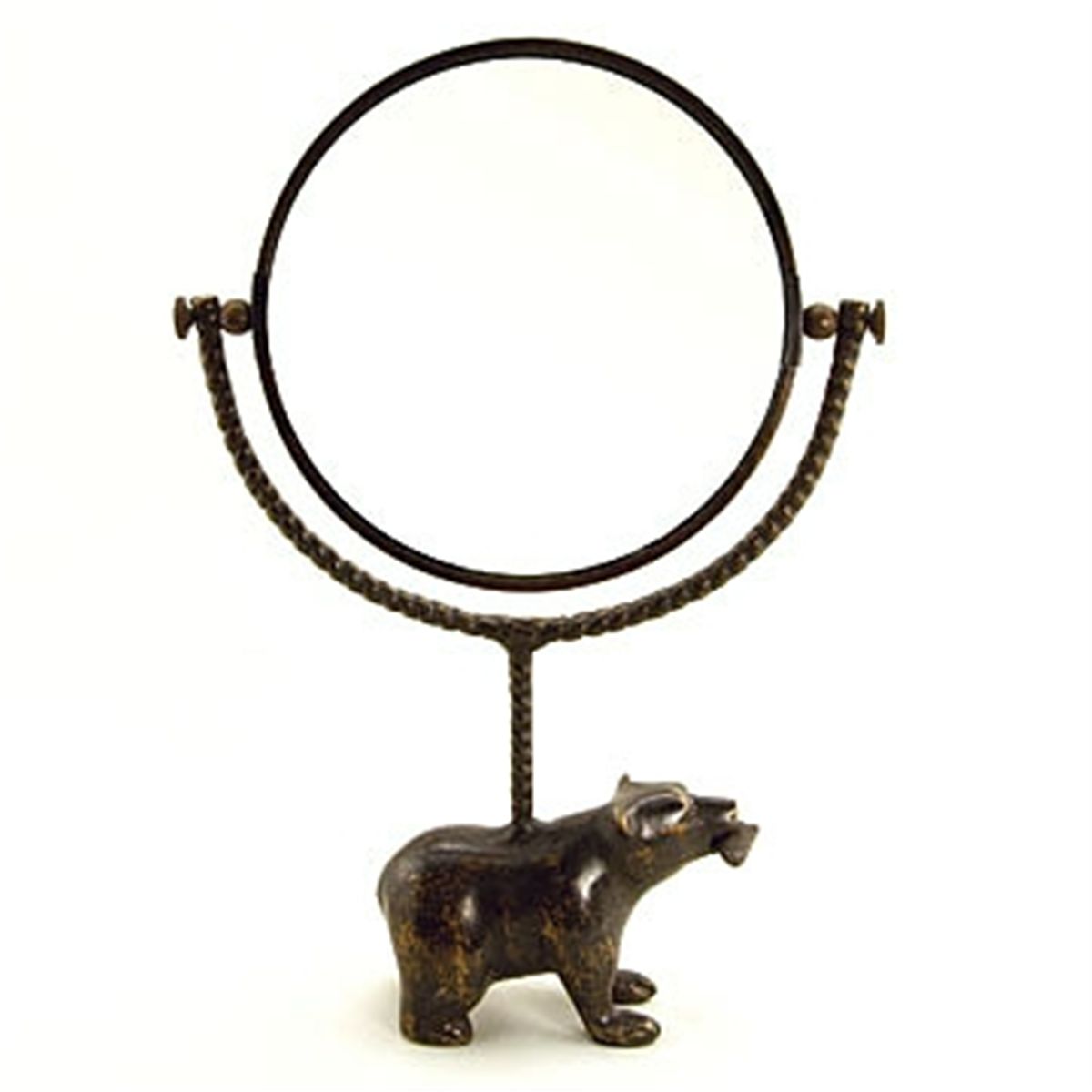 Bear & Fish Vanity Mirror - 14"H - Brass & Glass - Bronze Finish