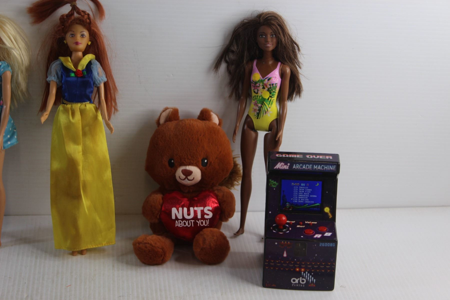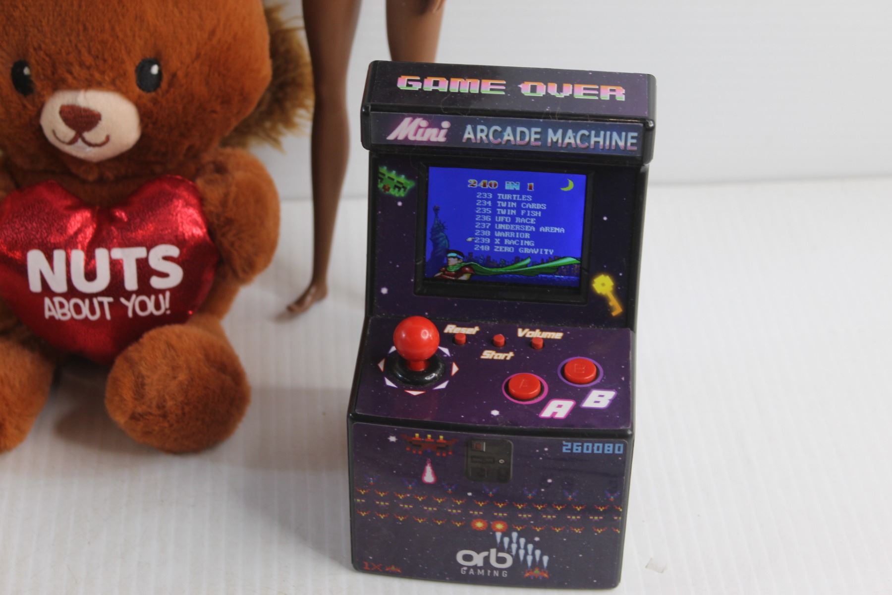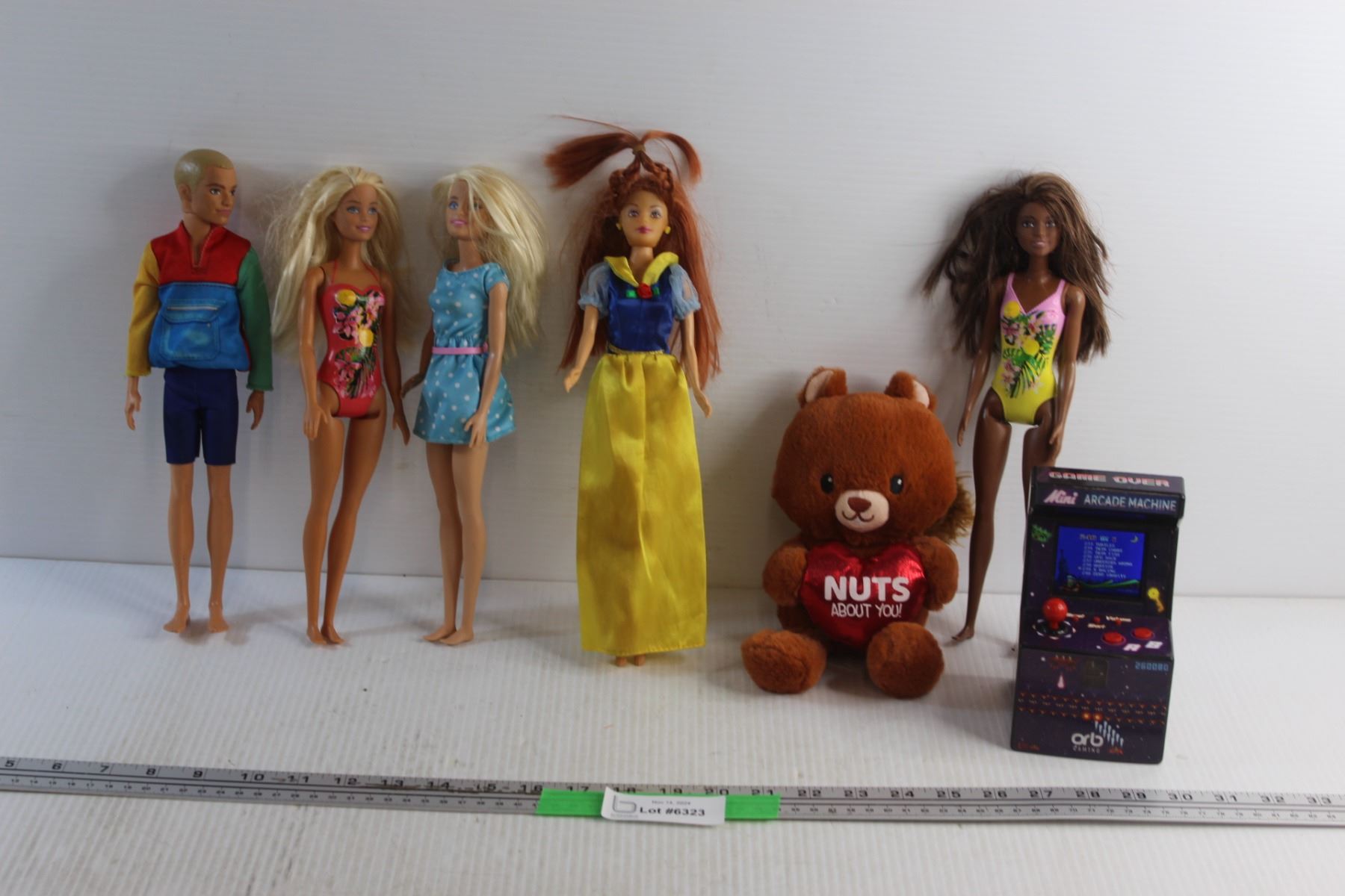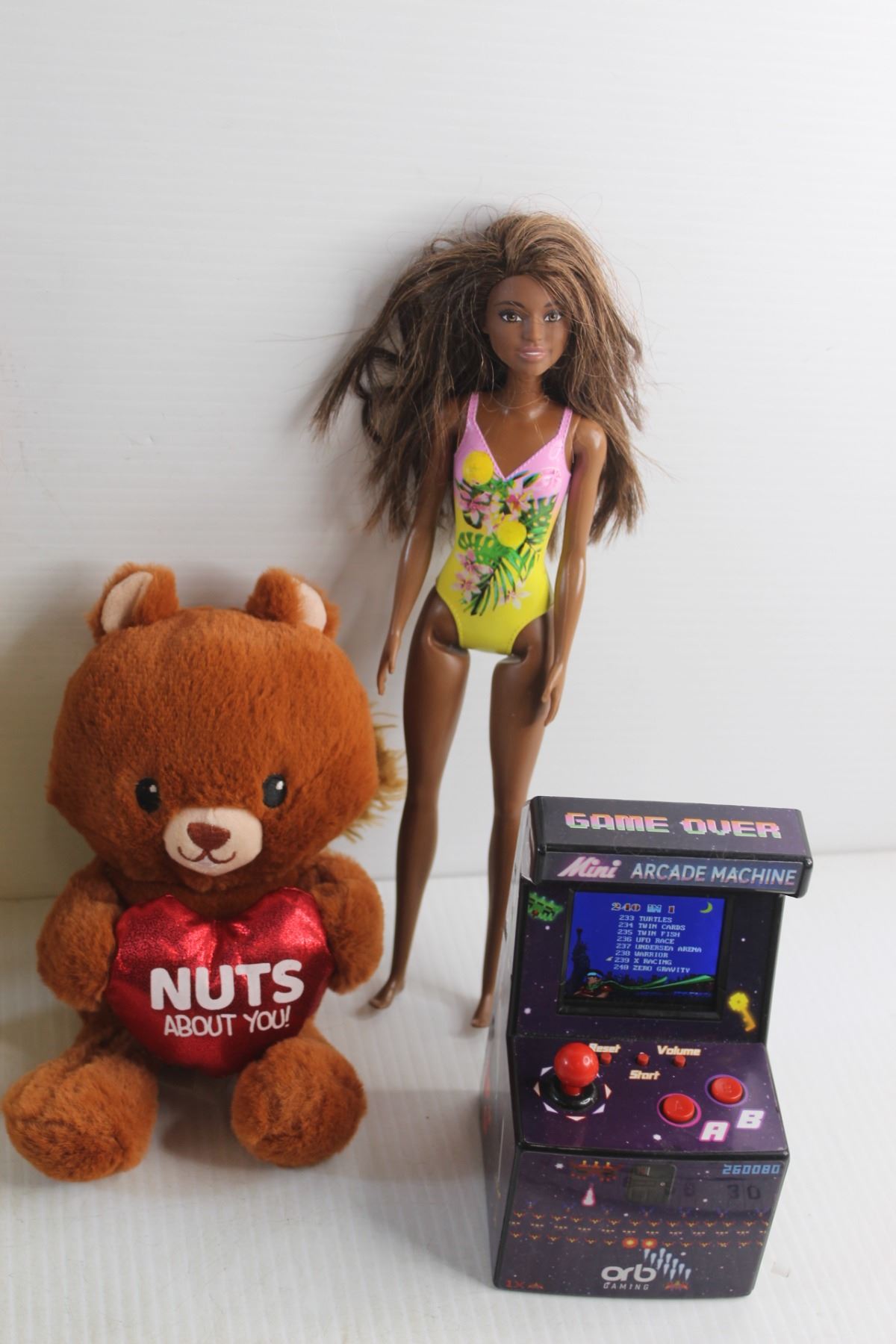 Bear Plush Toy, Barbie & Ken Dolls and Mini Arcade Machine - Tested