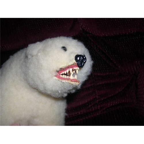 Here's a great bear. I don't know anything about him. The tag says Creations du Vagabond, Inc.Handmade Canada. It is 8" tall and about 12 1/2" long. He stands well unassisted. He is from a smoke free environment. Buyer to pay $10 for shipping, insurance and handling. Thanks for viewing.