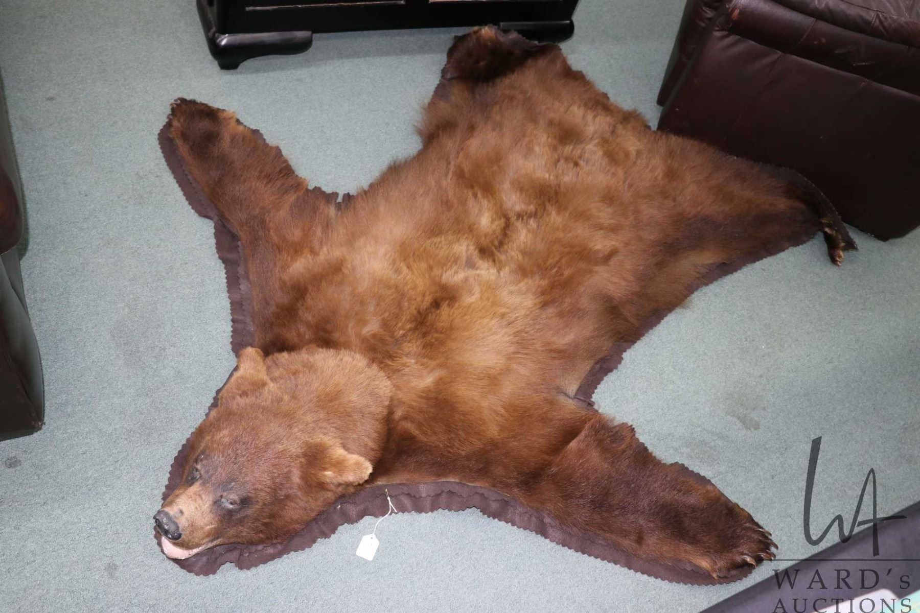 Bear skin rug with felt backing 71" nose to tail Note: Canadian bidders only