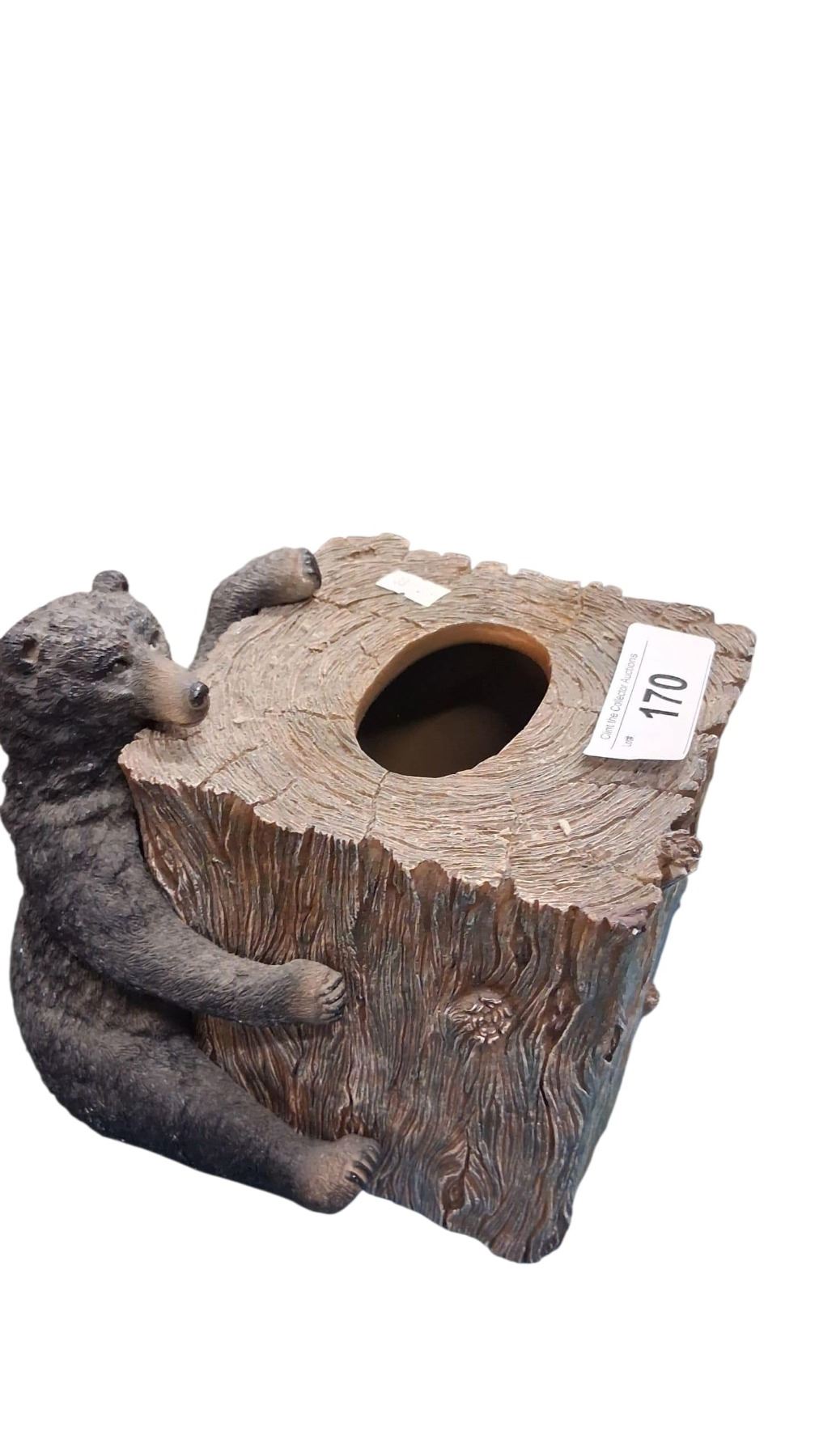 Bear tissue box made of resin, great for the cabin