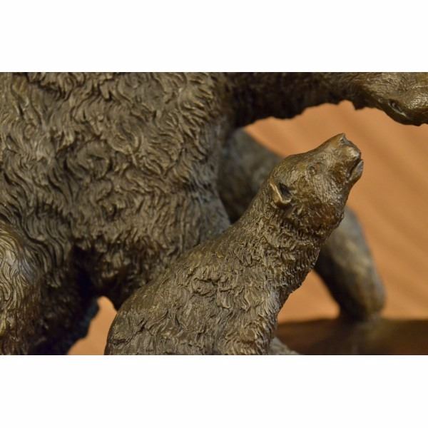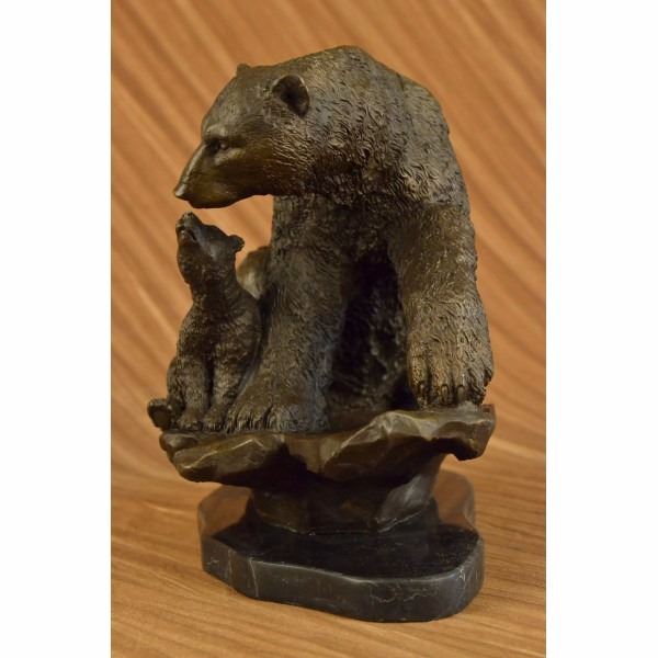Bear with Cub Bronze Sculpture on marble base Figurine