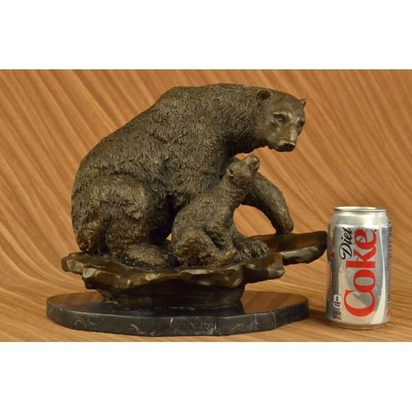 A cub stares up at his mother bear in this sculpture depicting the tender relationship between a mother and her cub. Mama bear is the protector; she feeds and guides her cub to grow strong and brave like herself. They stand together on a rock in the forest they call home. The tiny details in a bear’s fur are clearly defined on each animal. The lost wax method was used to create this piece. It rests on a black marble base. Bronze dimensions with marble base: Height 10 X width 14 inches. Weight: 16 lbs.Please Note: This is a reproduction bronze sculpture from the original molded and signed. This featured bronze sculpture is a recast after the original, and has been done recently. This 100% bronze sculpture is an abstract piece certain to be a conversation piece.Please Note: This is a reproduction bronze sculpture from the original molded and signed. This featured bronze sculpture is a recast after the original, and has been done recently. This 100% bronze sculpture is an abstract piece certain to be a conversation piece.
