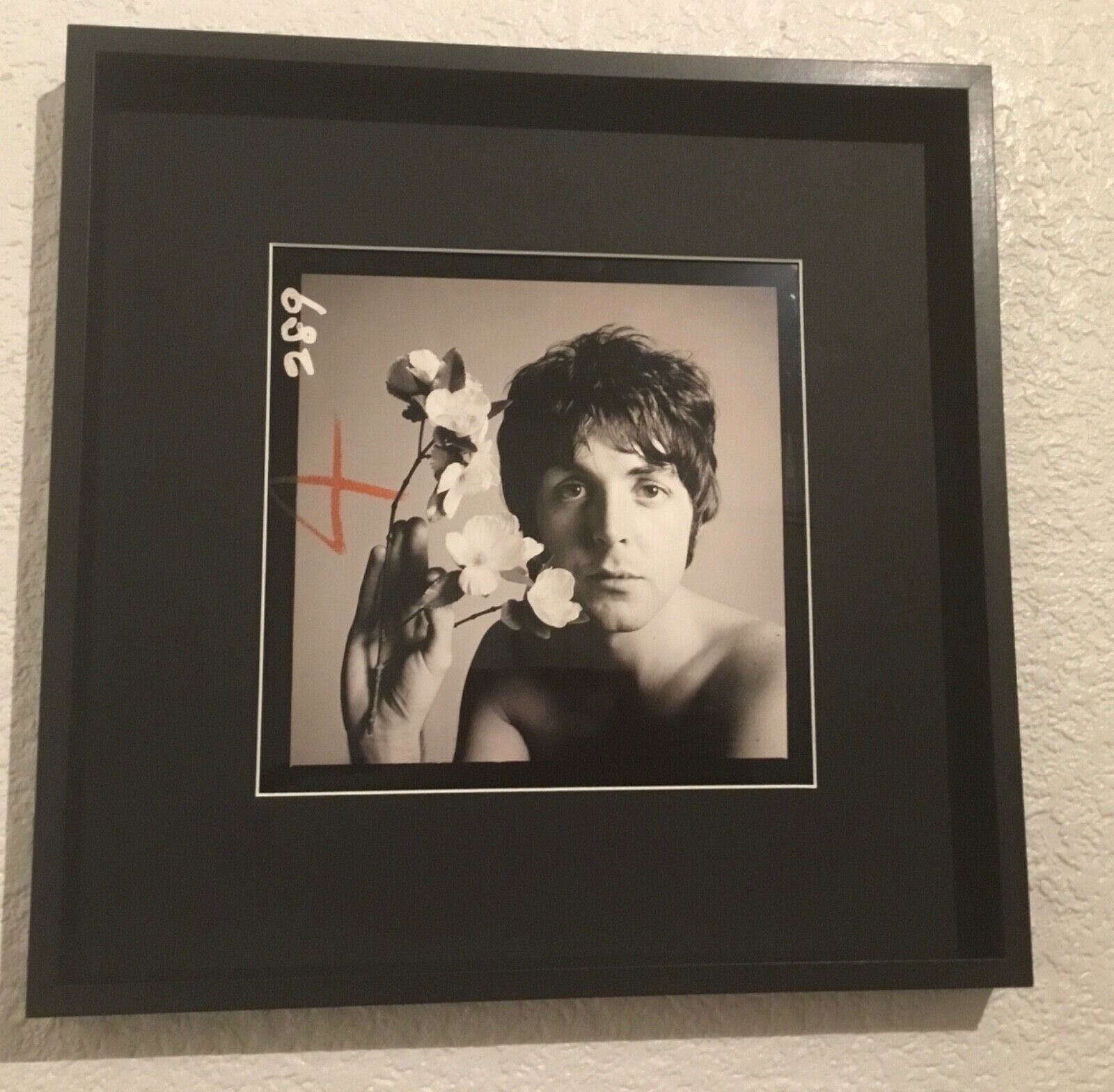 Richard Avedon photograph of Paul McCartney in 1967. Silver gelatin, printed later. Avedon copyright stamps on verso. Image: 10x10 inches. Mounted and framed.