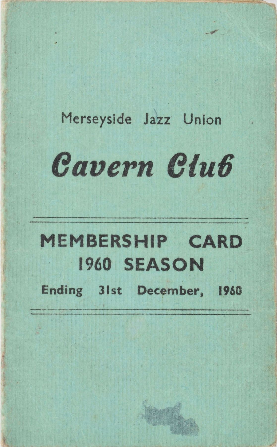 Very early Cavern Club membership card booklet for 1960, 2.5 x 4, with the owner’s name penned on the inside front cover. The booklet is issued as No. 2686, with the back cover listing club rules, and the front cover noting the card’s expiration on December 31, 1960. In fine condition, with light soiling and a small stain on the front cover. Accompanied by a certificate of authenticity from Tracks.
