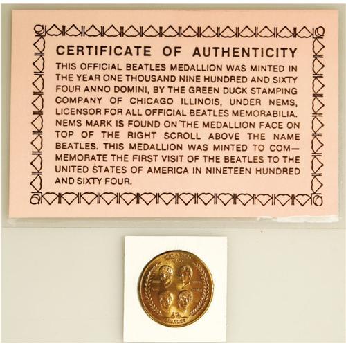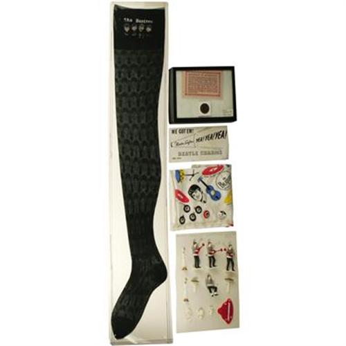 <B>Beatles Assorted Memorabilia Items.</B></I> Set of vintage Beatles collectibles includes a complete set of cake decorations, a set of unused Beatles stockings, a Beatles scarf with two small pinback buttons, a set of Beatles charms, and a 1964 original issue commemorative Beatles medallion. Items are in overall Very Fine condition.<I>From the Robert Johnson Memorabilia Collection.</B></I><BR><BR><b>Shipping:</b> Miscellaneous Collectibles, Larg (<a target="_blank" href="http://www.heritageauctions.com/common/shipping.php">view shipping information</a>)
