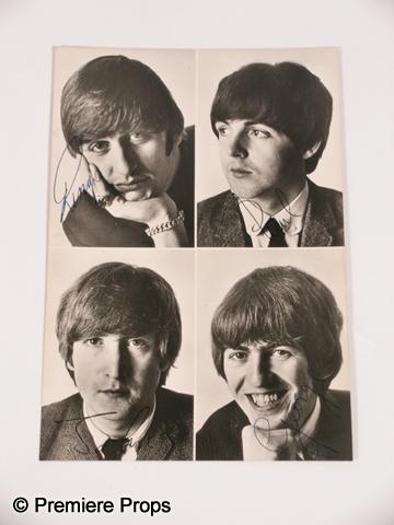 This extremely rare black and white glossy postcard is hand signed by all of the Beatles (John, Ringo, George and Paul) from their 1965 second US world tour. This special high gloss postcard was autographed and given out to each crew member and the opening band, Cannibal & The Headhunters, as a memento of the tour, during their chartered Boeing Electra DC-8 plane ride to New York for their all time world record performance at Shea Stadium. The Beatles Fan Club of America with the address for sign up on the back. (approx. 6" x 4 1/4") (HRG2001)