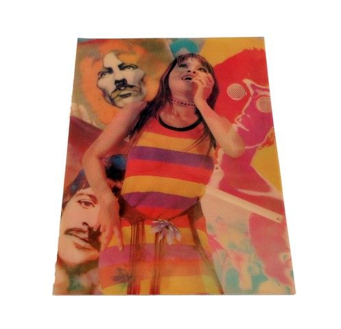 Beatles Avedon Lenticular Postcard (circa 1968) - An extremely rare Lenticular Beatles postcard. Lenticular printing is a technology in which Lenticular lenses (a technology that is also used for 3D displays) are used to produce printed images with an illusion of depth, or the ability to change or move as the image is viewed from different angles. This infamous postcard was processed in Japan. It shows a Japanese woman fully clothed, who, when you change the position of the card, is suddenly without clothes. It was also famous for having the iconic Look Magazine Beatles photos in the background. A true rarity.