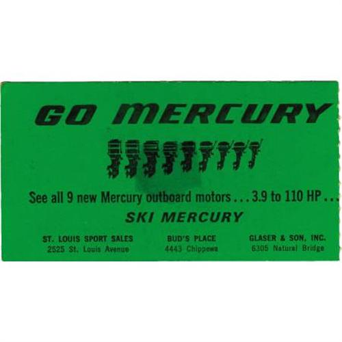 <B>Beatles Busch Stadium Concert Used Ticket.</B></I> When their August 20, 1966 performance at Crosley Field in Cincinnati was rescheduled for the following day due to heavy rain, it meant the Beatles would have to give two concerts on the same day in cities that were 341 miles apart, flying to St. Louis to perform the second show at Busch Stadium at 8:30 p.m. -- in heavy rain. This was also one of their last shows, as the band had decided to give up touring in favor of studio work. This used ticket from the St. Louis gig is a green loge stub in Very Fine condition with mild edge and corner wear and a small tape stain on the back.<BR><BR><b>Shipping:</b> Flat Material, Small (<a target="_blank" href="http://www.heritageauctions.com/common/shipping.php">view shipping information</a>)