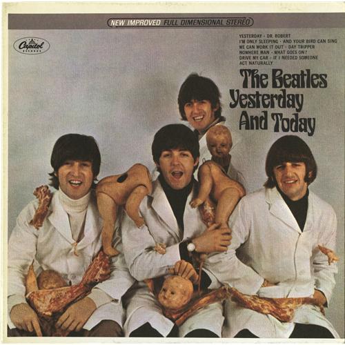 <B>Beatles First State Stereo Butcher Cover Prototype Art Proof.</B></I> A one-of-a-kind art proof produced by the Capitol Records art department, this is the rarest of all forms of the infamous "butcher cover." It features a stereo first state art slick pressed on a blank album cover, with no slick on the back side. The cover edges and back display a little yellowing and some very minor wear along the top edge, but is in otherwise Excellent condition. An <I>extremely</B></I> rare item.<BR><BR><b>Shipping:</b> Recordings (<a target="_blank" href="http://www.heritageauctions.com/common/shipping.php">view shipping information</a>) <BR><BR><B>Important notice