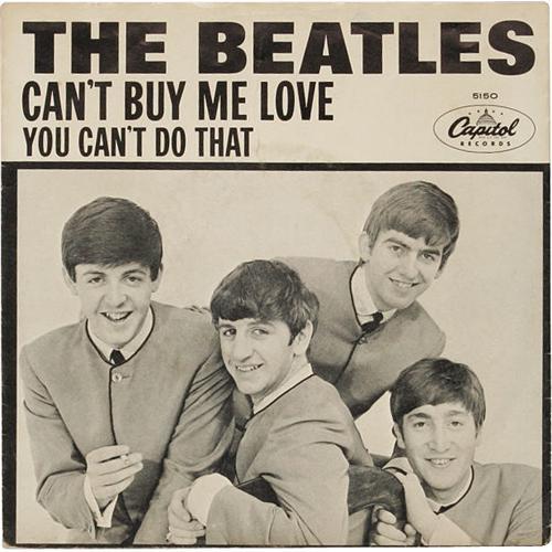 <B>Beatles "Can't Buy Me Love"/"You Can't Do That" 45 w/ Picture Sleeve (Capitol 5150, 1964).</B></I> The second and rarest picture sleeve from the Beatles. Nice copy with slight ring wear on the sleeve. Condition: EX 7/EX 7.<BR><BR><b>Shipping:</b> Recordings (<a target="_blank" href="http://www.heritageauctions.com/common/shipping.php">view shipping information</a>)