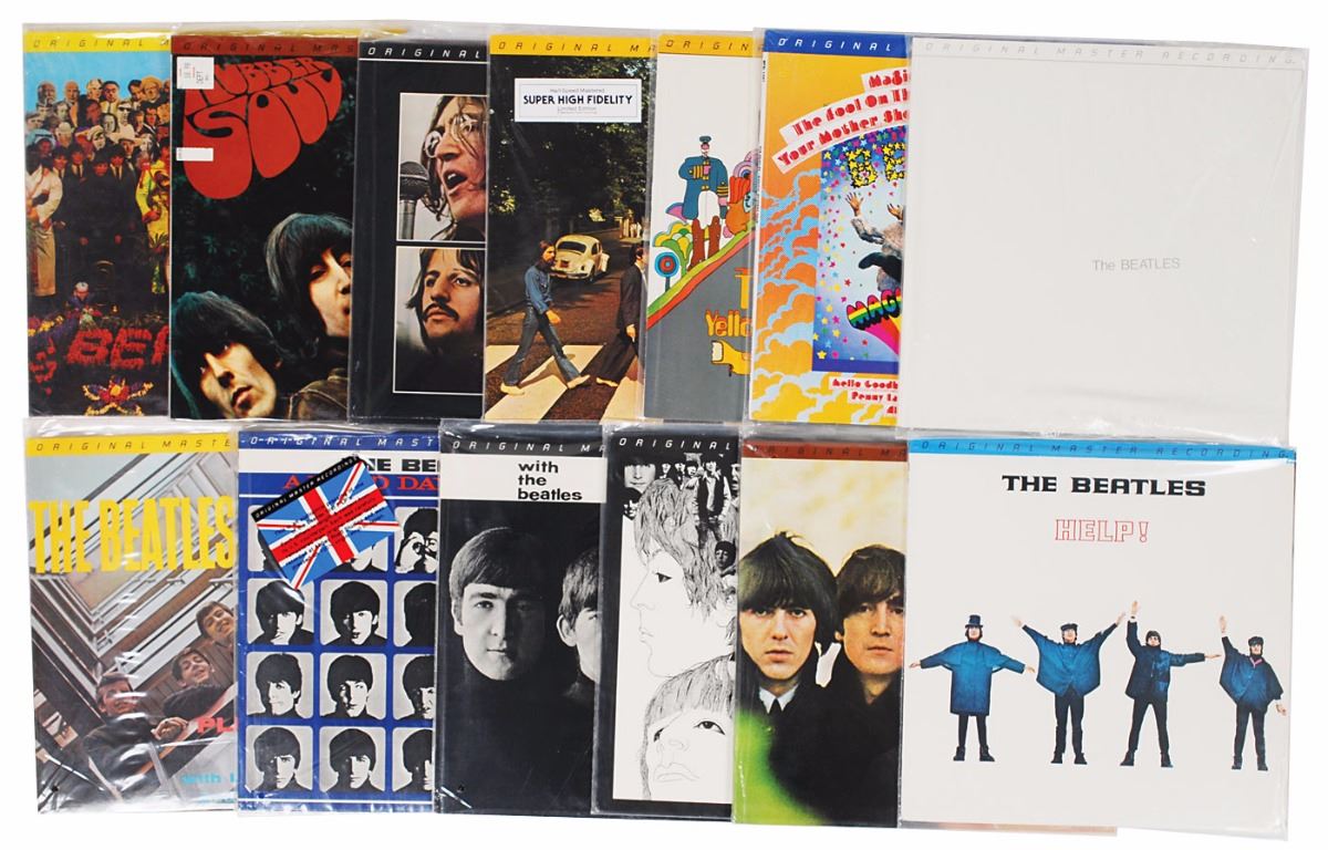 Complete set of thirteen sealed Mobile Fidelity Sound Lab albums of the masters for the Beatles’ studio albums: Please Please Me; With the Beatles; A Hard Day’s Night; Beatles for Sale; Help!; Rubber Soul; Revolver; Sgt. Pepper's Lonely Hearts Club Band; Magical Mystery Tour; The White Album; Yellow Submarine; Abbey Road; and Let It Be. In overall fine condition. These albums are very desirable and sought after by collectors and audiophiles alike.