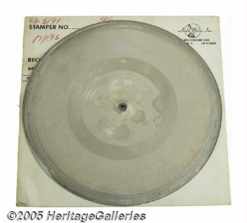 <B>Beatles "Do You Want to Know a Secret" Master Disc.</B></I> The 12" master for the single (VJ #587), in VG condition, completely tarnished from age.