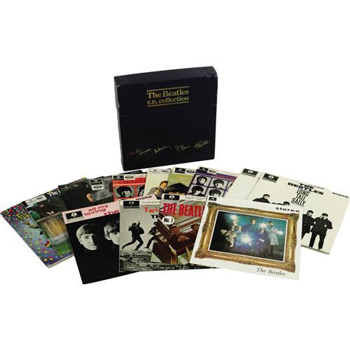 <B>The Beatles EPs Collection" Box Set Parlophone 14 (1981)</B></I> Complete set of all UK EPs and the double Magical Mystery Tour EP with book. Plus a stereo EP that was only issued in this box set, which included "Inner Light", "Baby You're A Rich Man", "She's A Woman", and "This Boy". Condition: EX 7 (box)/ MT 10 (records.
