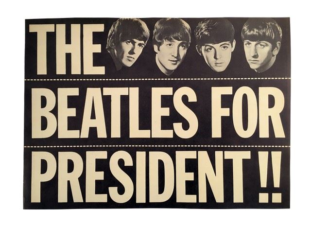Beatles For President Original Sign 1964. Original 1964 Beatles for President sign.