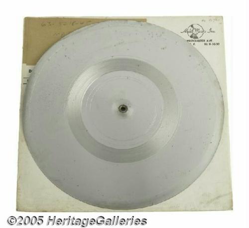 <B>Beatles "From Me to You" Master Disc.</B></I> This is the 12" master for the second Beatles 45 single (VJ #522) to be released in the U. S. (May 6, 1963, to be exact). Condition is VG+ with some tarnishing from age.