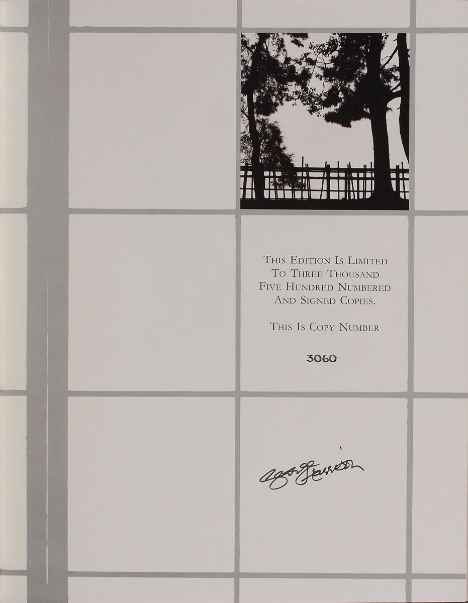 Signed book: Live in Japan. Limited edition, numbered 3060/3500. Surrey, England: Genesis Publications, 1993. Leather-bound hardcover with slipcase, 10.5 x 13.75, 274 pages. Signed on the colophon in black ink by Harrison. Slipcase includes a limited edition two-CD set of 19 songs recorded by Harrison and Eric Clapton and Band in Japan between December 11 and 17, 1991, as well as a souvenir pack containing two access passes and guitar picks from Harrison and Clapton. In fine condition.