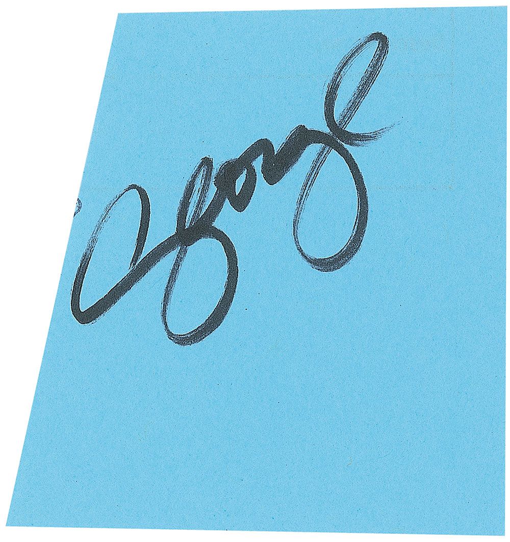Felt tip signature, “George,” on a light blue 2 x 2.5 clipped slip. In fine condition.