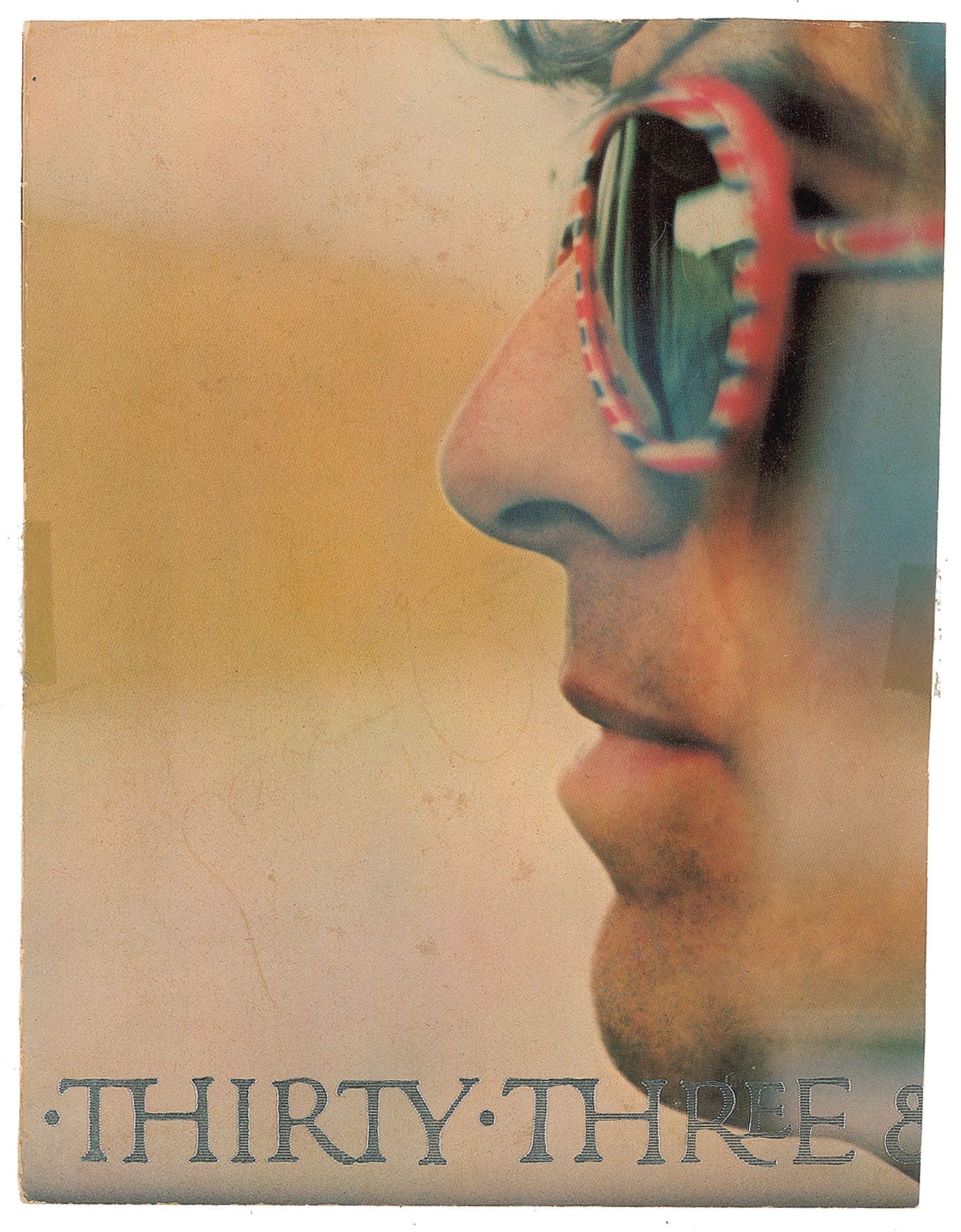 Large ballpoint signature, "George Harrison,” on the reverse of a 7.25 x 9.5 trimmed album flat for Thirty Three & 1/3. In fine condition, with light toning from prior display.