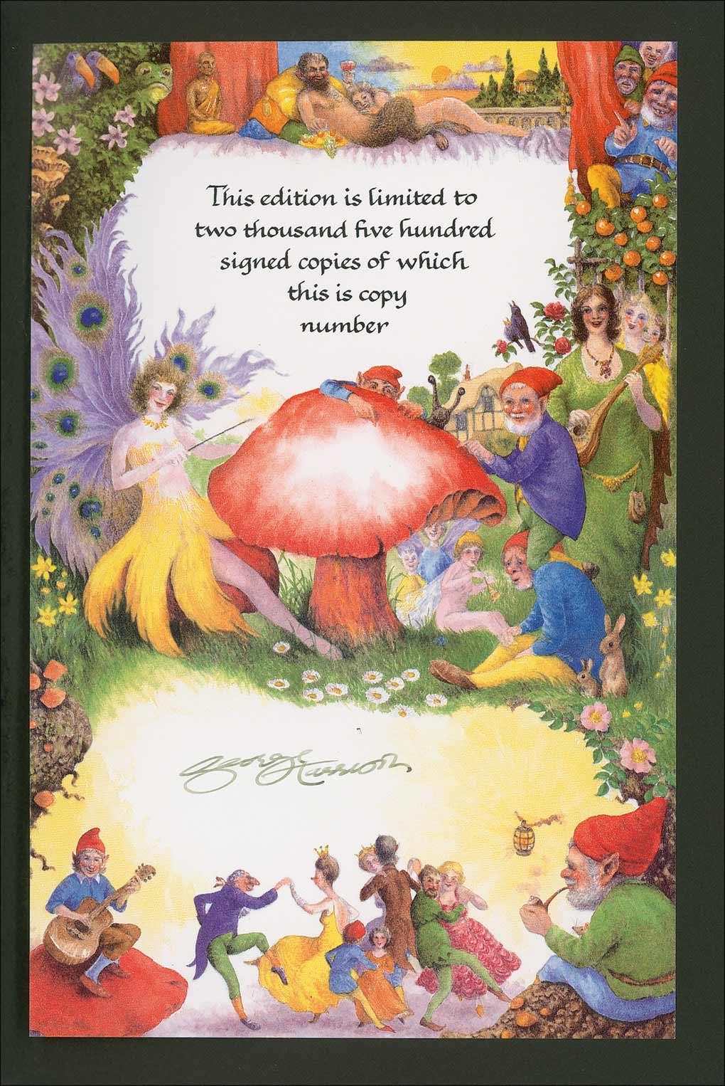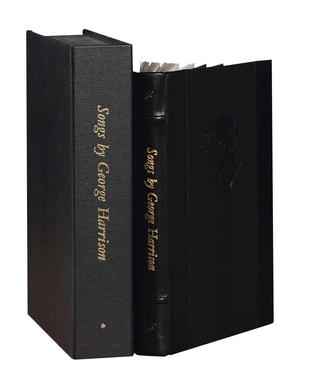 Signed book: Songs By George Harrison. This is number 213 of a short run of only 250 copies, extra to the limited edition and prepared for review purposes. London: Ganga Publishing, 1987. Hardcover with slipcase, 7 x 10.25, 176 pages. Signed on the color limitation page in black felt tip, and signed on a bookplate affixed to the front free end page by famed watercolor artist Keith West. The book is accompanied by its original four-song CD of unreleased Harrison material. In very fine condition.