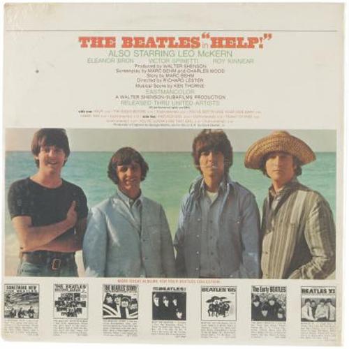 <B>Beatles "Help" Sealed Stereo LP (Capitol SMAS-2386, 1968).</B></I> Our best calculated guess is that this is a second pressing example, with the rainbow Capitol label having the "Subsidiary of Capitol" wording. Even though this is a sealed copy (with airholes!), a portion of the record opening is split, and a tan inner sleeve is discernible, which points to a second pressing. There's a manufacturer's defect (a slight dent) at the bottom right front, and there's a bit of minor staining at the top right corner where the shrink was split a tad. Condition: NM 8/ Still Sealed.<BR><BR><b>Shipping:</b> Recordings (<a target="_blank" href="http://www.heritageauctions.com/common/shipping.php">view shipping information</a>)