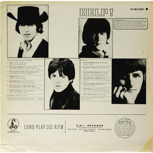 <B>Beatles "Help!" Shell Cover Parlophone 4257 Stereo (Holland, 1979).</B></I> You just <I>thought</B></I> your Beatles collection was complete! In 1979 Shell Oil in Holland was about to kick off a campaign called "Shell Helps" which called for booklets on car care and travel tips to be distributed to its customers. To launch the campaign, Shell scheduled a company-wide meeting for its Dutch distributors and store managers. The lucky employees were given a copy of this album, a "Shellified" version of "Help!" Only about 2000 copies were produced, and we have seen only a few over the years. We don't mean to put any pressure on ya, but...(nudge, nudge)... it's a rare opportunity to grab one of those copies in our auction. Condition: VG-EX 6/ MT-9.