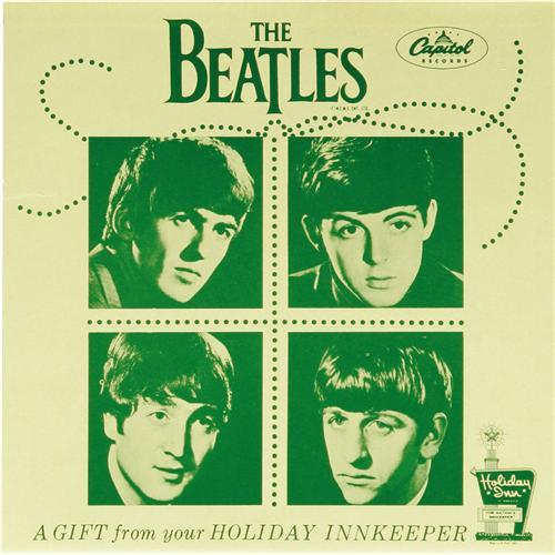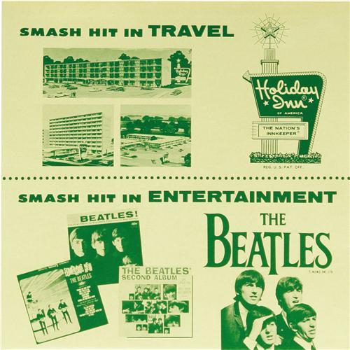 <B>Beatles Holiday Inn Flyer (1964).</B></I> Just in time for traveltime in the summer of '64, here's a bi-fold promotional flyer tie-in between the Beatles and Holiday Inn. It resembles a 45 picture sleeve from either side, and probably folded over a Beatles single that was given to guests of Holiday Inn. In most cases, since the flyer was open on three sides, it was probably stapled at the top to keep the record in place. Very few unused copies like this seem to be around, and our copy is in Mint condition! Condition: GM-MT 10. <I>From the GRT Collection</B></I>