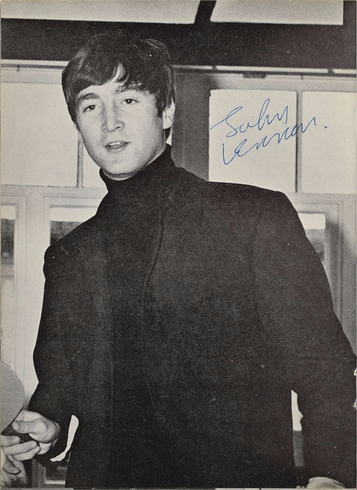 Vintage The Beatles Monthly Book, No. 2, September 1963, twenty-four pages, measures 6 x 8.25, signed inside next to his image in blue ballpoint by John Lennon. In fine condition, with general light handling wear. Consignor notes that this signature was obtained by a friend of Jim McCartney, Paul's father, at Paul McCartney’s Forthlin Road, Liverpool home in 1963.