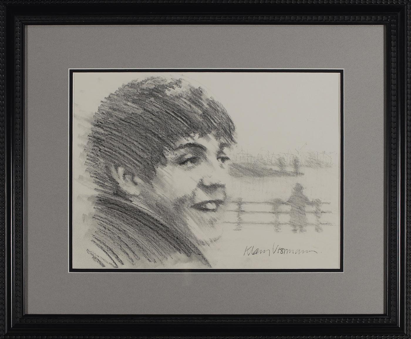 Original signed pencil sketch of Paul McCartney on a white 15.5 x 11.5 sheet. Archivally double matted and framed to an overall size of 24.5 x 20.25. In very fine condition, with slight brushing to the signature. Oversized.