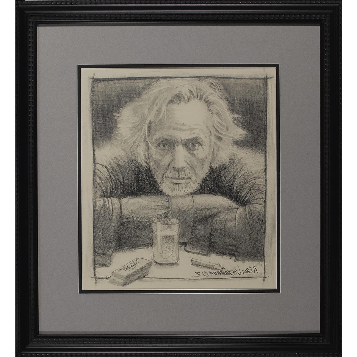 Original signed hand drawn pencil mirror-image self-portrait on an off-white 12.25 x 14 sheet, signed at the bottom in reverse by Voorman. Double matted and framed to an overall size of 21 x 22.5. In very fine condition. This sketch is featured as the front piece in his book about the Beatles titled ‘Four Track Stories.’ Included with this sketch is a Xerox copy of the front cover of the sketch owner’s book, as well as the sketch as it appears in the book, which has been signed and inscribed by Voorman, “Hello Len, doesn’t this picture remind you of something? Greetings, Klaus Voormann, 01-01-2006.”